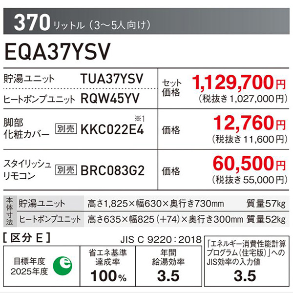EQA37YSV ダイキン エコキュート 角型 オートタイプ Aシリーズ 370L 2024年モデル 据え置き 住宅設備 パワフル高圧給湯(330kPa)