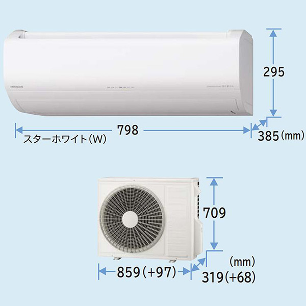 ●室外機サイズ:高さ709mm×幅859(+97)mm×奥行319(+68)mm