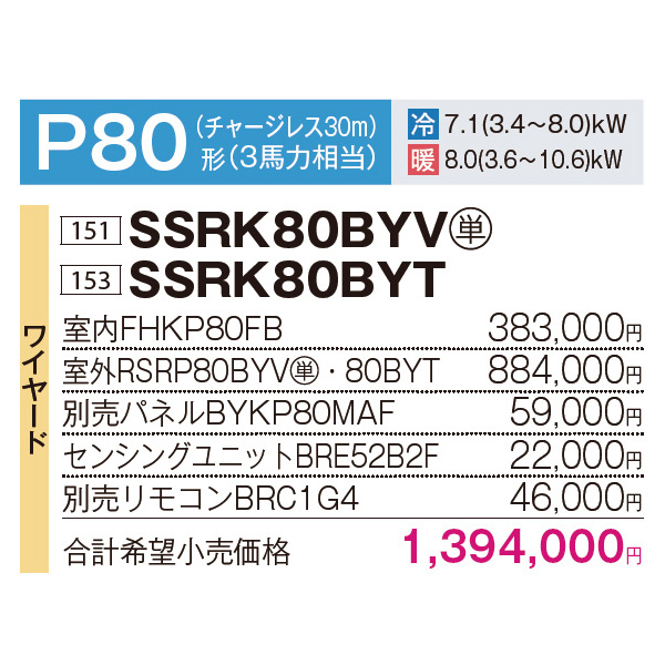 SSRK80BYV / SSRK80BYT 業務用エアコン