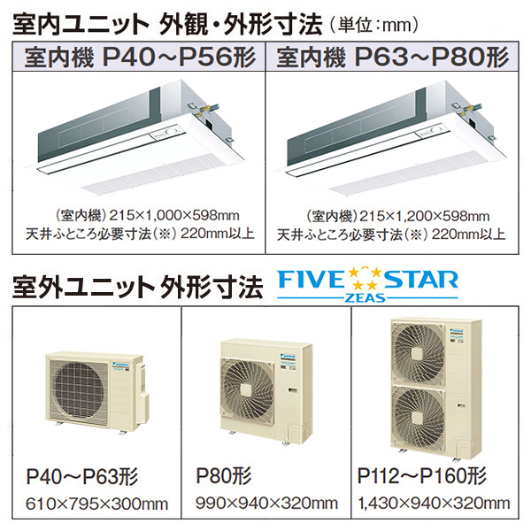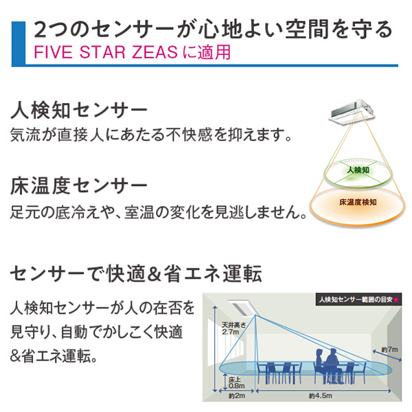 ■タイプ名:パッケージエアコン / 天井埋込形1方向 / FIVE STAR ZEAS / シングルフロー / センシングタイプ / シングル(室内機1台×室外機1台)