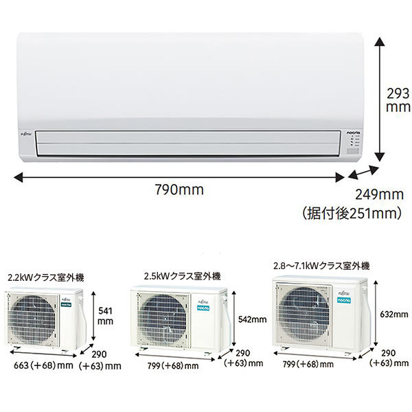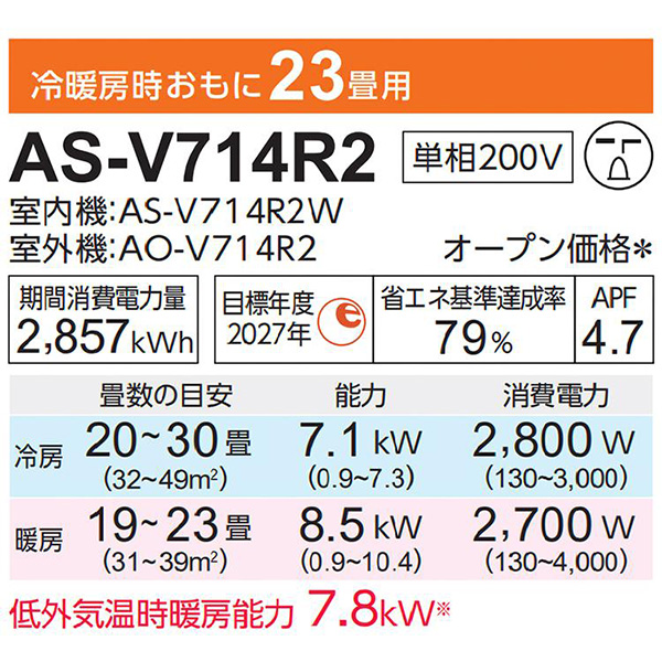カテゴリ ルームエアコン 型番 AS-V714R2-W 定価 オープン価格 販売価格 税込 178,000円 送料 東京・神奈川全域:無料(一部地域や離島を除く) 詳細 ■メーカー:富士通ゼネラル ■モデル名:2024年モデル ■シリーズ名:nocria Vシリーズ ■適用畳数:23畳用 ■カラー:ホワイト ■電源:単相200V ■室内機:AS-V714R2-W ■室外機:AO-V714R2 ●室内機サイズ:高さ293mm×幅790mm×奥行249(据付後251)mm ●室外機サイズ:高さ632mm×幅799(+68)mm×奥行290(63)mm ■期間消費電力量(年間):2857kWh ■その他機能等 ・熱交換器加熱除菌 ・内部クリーン ・スイング(上下) ・ハイパワー ・ランドリー運転 ・ホットキープ除霜 ・室温センサー ・除湿(ひかえめ/ソフトクール) ・防カビ送風路 ※記載された情報は商品仕様の一部ですので、詳細はメーカーサイトにてご確認ください。 ※標準取付工事のほか、家電量販店では対応困難な『隠ぺい配管工事』も承ります。
