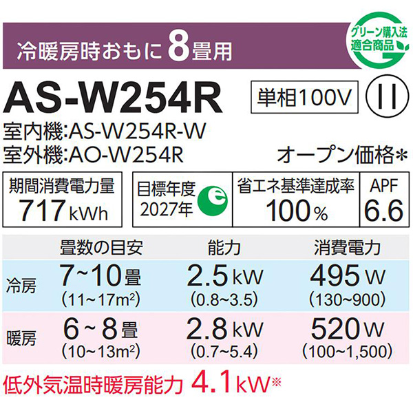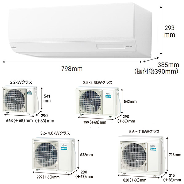 カテゴリ ルームエアコン 型番 AS-W254R-W 定価 オープン価格 販売価格 税込 147,000円 送料 東京・神奈川全域:無料(一部地域や離島を除く) 詳細 ■メーカー:富士通ゼネラル ■モデル名:2024年モデル ■シリーズ名:nocria Wシリーズ ■適用畳数:8畳用 ■カラー:ホワイト ■電源:単相100V ■室内機:AS-W254R-W ■室外機:AO-W254R ●室内機サイズ:高さ293mm×幅798mm×奥行385(据付後390)mm ●室外機サイズ:高さ542mm×幅799(+68)mm×奥行290(63)mm ■期間消費電力量(年間):717kWh ■その他機能等 ・熱交換器加熱除菌 ・内部クリーン ・ダブルウイングフラップ ・ランドリー運転 ・速暖 ・みまもり ・センサー(室温/人感) ・除湿(ひかえめ/ソフトクール) ・フィルター自動おそうじ ※記載された情報は商品仕様の一部ですので、詳細はメーカーサイトにてご確認ください。 ※標準取付工事のほか、家電量販店では対応困難な『隠ぺい配管工事』も承ります。
