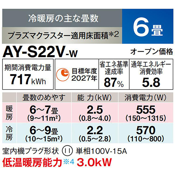 ■室内機:AY-S22V-W