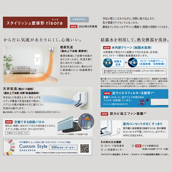 カテゴリ ハウジングエアコン 型番 C563ATSVK 定価 264,000円 販売価格 税込 98,000円 詳細 ■メーカー:ダイキン ■モデル名:2023年モデル ■タイプ名:risora システムマルチエアコン(室内機) ■適用畳数:18畳用 ■カラー:ダークグレー ■電源:単相200V ■室内機:C563ATSVK ■室外機:なし ●室内機サイズ:高さ295mm×幅798mm×奥行185mm ●室外機サイズ:- ■その他機能等 ・スイングコンプレッサ— ・9段階セレクトドライ ・自動運転 ・ニオイないス運転 ・風ないス運転 ・オートスイング(上下左右立体) ・クリアコート熱交換器 ・ストリーマ空気清浄 / 内部クリーン ・人・床温度センサー ※記載された情報は商品仕様の一部ですので、詳細はメーカーサイトにてご確認ください。 ※標準取付工事のほか、家電量販店では対応困難な『隠ぺい配管工事』も承ります。