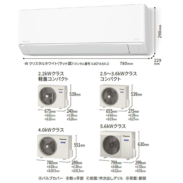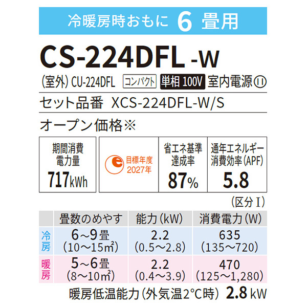 カテゴリ ルームエアコン 型番 CS-224DFL-W 定価 オープン価格 販売価格 税込 69,800円 送料 東京・神奈川全域:無料(一部地域や離島を除く) 詳細 ■メーカー:パナソニック ■モデル名:2024年モデル ■シリーズ名:Eolia Fシリーズ ■適用畳数:6畳用 ■カラー:クリスタルホワイト ■電源:単相100V ■室内機:CS-224DFL ■室外機:CU-224DFL ●室内機サイズ:高さ290mm×幅780mm×奥行229mm ●室外機サイズ:高さ539mm×幅675mm×奥行240mm ■期間消費電力量(年間):717kWh ■その他機能等 ・内部クリーン(冷房時) 熱交換器コーティング(親水) エアフィルター ・空気清浄フィルター(別売) ・すぐでる冷房 ・快速温度シフト ・天井気流 ・1/fゆらぎ ・上下自動スイング(上下のみ) ※記載された情報は商品仕様の一部ですので、詳細はメーカーサイトにてご確認ください。 ※標準取付工事のほか、家電量販店では対応困難な『隠ぺい配管工事』も承ります。