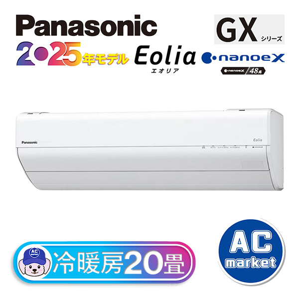 CS-635DGX2-W パナソニック ルームエアコン Eolia エオリア GXシリーズ 主に20畳用 クリスタルホワイト 2025年モデル ナノイーX(48兆) コンパクトモデル