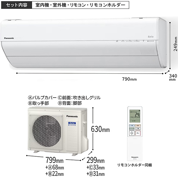 ●室内機サイズ:高さ249×幅790×奥行340mm