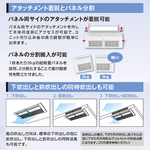 ●室内機サイズ:本体:高さ220mm×幅1150mm×奥行565mm / パネル:高さ35mm×幅1460mm×奥行650mm