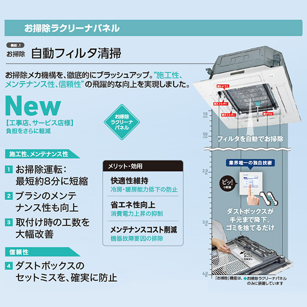 カテゴリ 業務用エアコン 型番 FDTV1405HA5SA 定価 1,665,400円 販売価格 税込 374,000円 送料 東京・神奈川全域:無料(一部地域や離島を除く) 詳細 ■メーカー:三菱重工 ■モデル名:2021年モデル ■タイプ名:パッケージエアコン / 天井埋込形4方向 / Hyper Inverter / 標準パネル / シングル(室内機1台×室外機1台) ■能力:5馬力(P140形) /【平米数】82~122㎡ /【坪数】24~36坪 /【畳数】48~72畳 ■パネル4種:標準パネル / お掃除ラクリーナパネル / ラクリーナパネル / エアフレックスパネル ■電源:三相200V ■室内機:FDTZP1605SA ■室外機:FDCVP1405HA ●室内機サイズ:本体:高さ298mm×幅840mm×奥行840mm / パネル:高さ35mm×幅950mm×奥行950mm ●室外機サイズ:高さ1050mm×幅970mm×奥行370mm ■その他機能等 ・ワイヤード ・AirFlex(エアフレックスパネル) ・グリル自動昇降(ラクリーナパネル) ・自動フィルタ清掃(お掃除ラクリーナパネル) ・フリーフロー ・風量自動 ・ハイパワー運転 ・ドライ ・防カビロングライフフィルタ ※記載された情報は商品仕様の一部ですので、詳細はメーカーサイトにてご確認ください。 ※標準取付工事のほか、家電量販店では対応困難な『隠ぺい配管工事』も承ります。