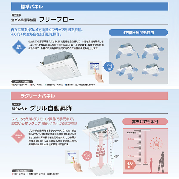 カテゴリ 業務用エアコン 型番 FDTZ455HKA5SA / FDTZ455H5SA 定価 1,060,400円 販売価格 税込 253,000円 送料 東京・神奈川全域:無料(一部地域や離島を除く) 詳細 ■メーカー:三菱重工 ■モデル名:2021年モデル ■タイプ名:パッケージエアコン / 天井埋込形4方向 / EXCEED HYPER / 標準パネル / シングル(室内機1台×室外機1台) ■能力:1.8馬力(P45形) /【平米数】26~39㎡ /【坪数】7~11坪 /【畳数】14~22畳 ■パネル4種:標準パネル / お掃除ラクリーナパネル / ラクリーナパネル / エアフレックスパネル ■電源:単相200V / 三相200V ■室内機:FDTZP635SA ■室外機:FDCZP455HK / FDCZP455H ●室内機サイズ:本体:高さ236mm×幅840mm×奥行840mm / パネル:高さ35mm×幅950mm×奥行950mm ●室外機サイズ:高さ640mm×幅800(+71)mm×奥行290mm ■その他機能等 ・ワイヤード ・AirFlex(エアフレックスパネル) ・グリル自動昇降(ラクリーナパネル) ・自動フィルタ清掃(お掃除ラクリーナパネル) ・フリーフロー ・風量自動 ・ハイパワー運転 ・ドライ ・ダイレクトスーパーリンク ・防カビロングライフフィルタ ※記載された情報は商品仕様の一部ですので、詳細はメーカーサイトにてご確認ください。 ※標準取付工事のほか、家電量販店では対応困難な『隠ぺい配管工事』も承ります。