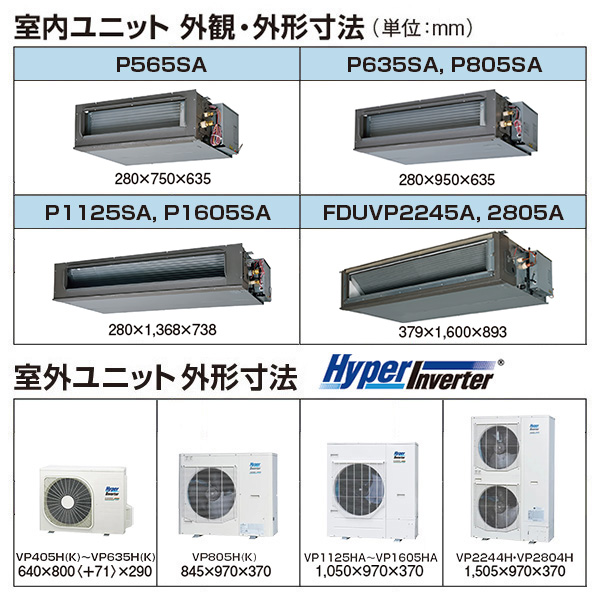カテゴリ 業務用エアコン 型番 FDUV1405HPA5SA 定価 2,106,500円 販売価格 税込 472,000円 送料 東京・神奈川全域:無料(一部地域や離島を除く) 詳細 ■メーカー:三菱重工 ■モデル名:2021年モデル ■タイプ名:パッケージエアコン / ダクト形 / Hyper Inverter / ツイン(室内機2台×室外機1台) ■能力:5馬力(P140形) /【平米数】82~122㎡ /【坪数】24~36坪 /【畳数】48~72畳 ■電源:三相200V ■室内機:FDUZP805SA x2 ■室外機:FDCVP1405HA ●室内機サイズ:高さ280mm×幅950mm×奥行635mm ●室外機サイズ:高さ1050mm×幅970mm×奥行370mm ■その他機能等 ・ワイヤード ・風量自動 ・ドライ ・ホットスタート ・年間冷房運転 ・ハイパワー運転 ・省エネ運転 ・ダイレクトスーパーリンク ・セレクトサーモ ※記載された情報は商品仕様の一部ですので、詳細はメーカーサイトにてご確認ください。 ※標準取付工事のほか、家電量販店では対応困難な『隠ぺい配管工事』も承ります。