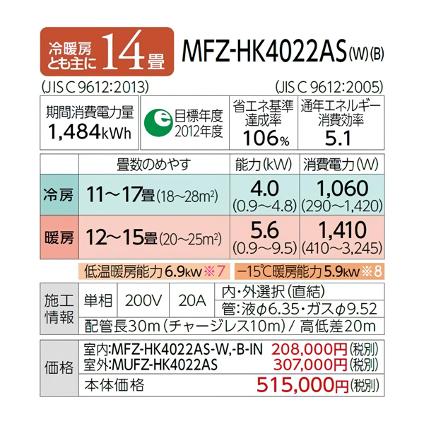 ■室内機:MFZ-HK4022AS-W-IN