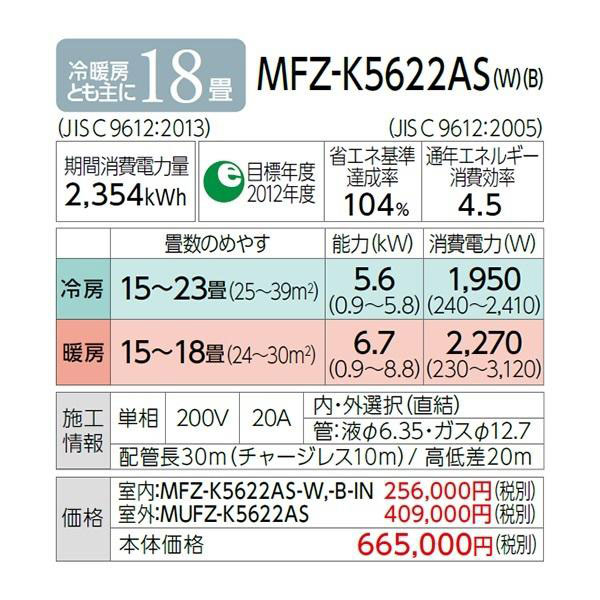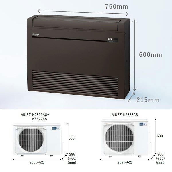 カテゴリ ハウジングエアコン 型番 MFZ-K5622AS-B 定価 653,000円 販売価格 税込 207,000円 送料 東京・神奈川全域:無料(一部地域や離島を除く) 詳細 ■メーカー:三菱電機 ■モデル名:2022年モデル ■タイプ名:床置き形 ■シリーズ名:霧ヶ峰 Kシリーズ ■適用畳数:18畳用 ■カラー:ダークブラウン ■電源:単相200V ■室内機:MFZ-K5622AS-W ■室外機:MUFZ-K5622AS ●室内機サイズ:高さ600mm×幅750mm×奥行215mm ●室外機サイズ:高さ550mm×幅800(+62)mm×奥行285(+60)mm ■期間消費電力量(年間):2354kWh ■その他機能等 ・オートフラップ ・上下涼感スイング ・プラチナエアフィルター ・STRONG冷房 ・選べる3モード除湿 ・空清Vフィルター ・室温キープシステム ・急速Wヒート ・おこのみ運転 ※記載された情報は商品仕様の一部ですので、詳細はメーカーサイトにてご確認ください。 ※標準取付工事のほか、家電量販店では対応困難な『隠ぺい配管工事』も承ります。