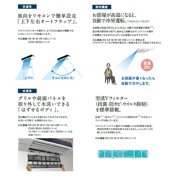 カテゴリ ハウジングエアコン 型番 MLZ-RX5022AS 定価 663,300円 販売価格 税込 210,000円 詳細 ■メーカー:三菱電機 ■モデル名:2022年モデル ■シリーズ名:RXシリーズ ■タイプ名:天井埋込形1方向 ■適用畳数:16畳用 ■パネルカラー:AC-V01PW(ホワイト) / MAC-V02PB(ベージュ) ■電源:単相200V ■室内機:MLZ-RX5022AS-IN ■室外機:MULZ-RX5022AS ●室内機サイズ:高さ185mm×幅1102mm×奥行360mm ●室外機サイズ:高さ550mm×幅800(+62)mm×奥行285(+60)mm ■期間消費電力量(年間):2012kWh ■その他機能等 ・室温キープシステム ・10℃キープ暖房 ・strong冷房 ・上下左右オートフラップ ・高温みまもり ・選べる3モード除湿 ・高天井モード ・上下左右涼感スイング ・空清Vフィルター ※記載された情報は商品仕様の一部ですので、詳細はメーカーサイトにてご確認ください。 ※標準取付工事のほか、家電量販店では対応困難な『隠ぺい配管工事』も承ります。