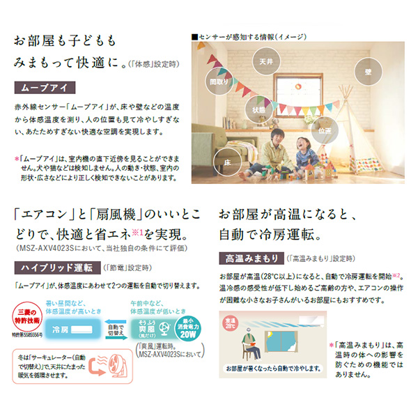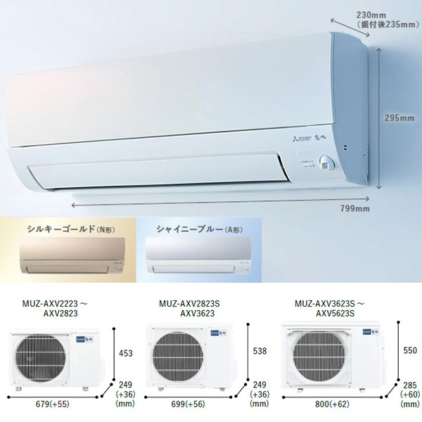 カテゴリ ルームエアコン 型番 MSZ-AXV3623S-W 定価 385,000円 販売価格 税込 119,000円 送料 東京・神奈川全域:無料(一部地域や離島を除く) 詳細 ■メーカー:三菱電機 ■モデル名:2023年モデル ■シリーズ名:霧ヶ峰 AXVシリーズ ■適用畳数:12畳用 ■カラー:パールホワイト ■電源:単相200V ■室内機:MSZ-AXV3623S-W-IN ■室外機:MUZ-AXV3623S ●室内機サイズ:高さ295mm×幅799mm×奥行230(据付後235)mm ●室外機サイズ:高さ550mm×幅800(+62)mm×奥行285(+60)mm ■期間消費電力量(年間):1390kWh ■その他機能等 ・ムーブアイ ・ハイブリッド運転 ・室温キープシステム ・スマート除湿 ・STRONG冷房 ・保湿風よけ ・みまもり快眠 ・内部クリーンlight / スタート脱臭 ・清潔Vフィルター(防カビ・ウイルス抑制) ※記載された情報は商品仕様の一部ですので、詳細はメーカーサイトにてご確認ください。 ※標準取付工事のほか、家電量販店では対応困難な『隠ぺい配管工事』も承ります。