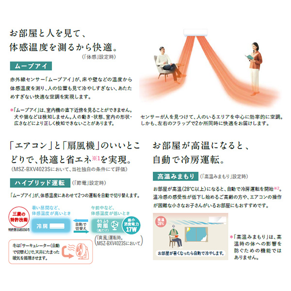 MSZ-BXV2823-W 三菱電機 霧ヶ峰 ルームエアコン BXVシリーズ 10畳用 ピュアホワイト 2023年モデル ムーブアイ