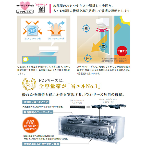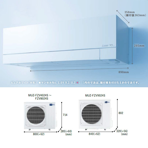 カテゴリ ルームエアコン 型番 MSZ-FZV4024S-W 定価 555,000円 販売価格 税込 220,000円 送料 東京・神奈川全域:無料(一部地域や離島を除く) 詳細 ■メーカー:三菱電機 ■モデル名:2024年モデル ■シリーズ名:霧ヶ峰 FZシリーズ ■適用畳数:14畳用 ■カラー:ピュアホワイト ■電源:単相200V ■室内機:MSZ-FZV4024S-W-IN ■室外機:MUZ-FZV4024S ●室内機サイズ:高さ285mm×幅890mm×奥行358(据付後363)mm ●室外機サイズ:高さ714mm×幅800(+62)mm×奥行285(+60)mm ■期間消費電力量(年間):1022kWh ■その他機能等 ・エモコアイ ・ムーブアイmirA.I.+ ・A.I.自動 ・A.I.(ハイブリッド運転) ・A.I.(自動風あて・風よけ) ・ピュアミスト ・プレミアム除湿 ・フィルター自動お掃除(はずせる) ・省エネNo.1 ※記載された情報は商品仕様の一部ですので、詳細はメーカーサイトにてご確認ください。 ※標準取付工事のほか、家電量販店では対応困難な『隠ぺい配管工事』も承ります。