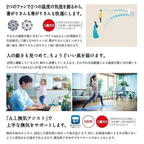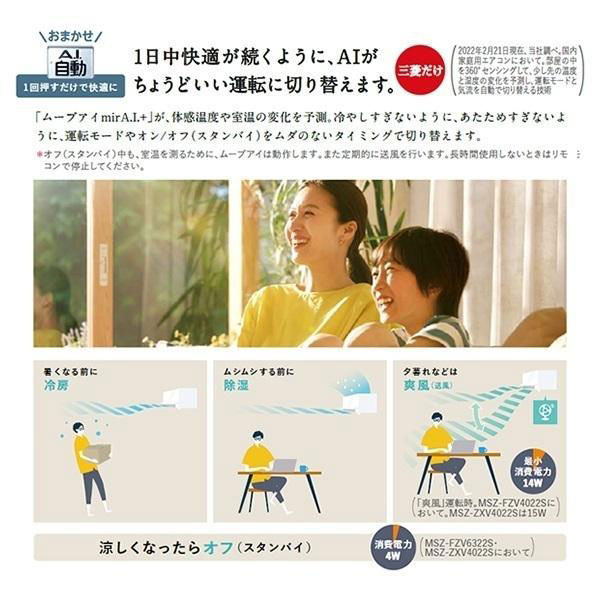 カテゴリ ルームエアコン 型番 MSZ-FZV6322S-W 定価 630,000円 販売価格 税込 282,000円 送料 東京・神奈川全域:無料(一部地域や離島を除く) 詳細 ■メーカー:三菱電機 ■モデル名:2022年モデル ■シリーズ名:霧ヶ峰 FZシリーズ ■適用畳数:20畳用 ■カラー:ピュアホワイト ■電源:単相200V ■室内機:MSZ-FZV6322S-W ■室外機:MUZ-FZV6322S ●室内機サイズ:高285mm×幅890mm×奥行358(363)mm ●室外機サイズ:高802mm×幅840(+62)mm×奥行320(+56)mm ■期間消費電力量(年間):1727kWh ■その他機能等 ・ムーブアイmirA.I.+ ・室温キープシステム ・最高約60℃温風 ・10℃キープ暖房 ・STRONG冷房 ・2か所同時空調 ・2温度2気流 ・うる肌気流 ・保湿風よけ ※記載された情報は商品仕様の一部ですので、詳細はメーカーサイトにてご確認ください。 ※標準取付工事のほか、家電量販店では対応困難な『隠ぺい配管工事』も承ります。