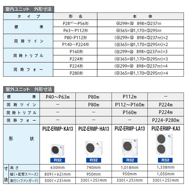 ■タイプ名:パッケージエアコン / 壁掛け形 / スリムER / ツイン(室内機2台×室外機1台)