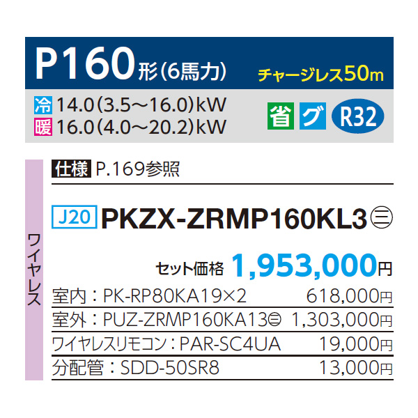 PKZX-ZRMP160KL3 三菱電機 ツイン(室内機2台×室外機1台) 業務用エアコン パッケージエアコン 壁掛け形 スリムZR ワイヤレス 6馬力 三相200V 2023年モデル