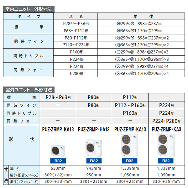 ■タイプ名:パッケージエアコン / 壁掛け形 / スリムZR / ツイン(室内機2台×室外機1台)
