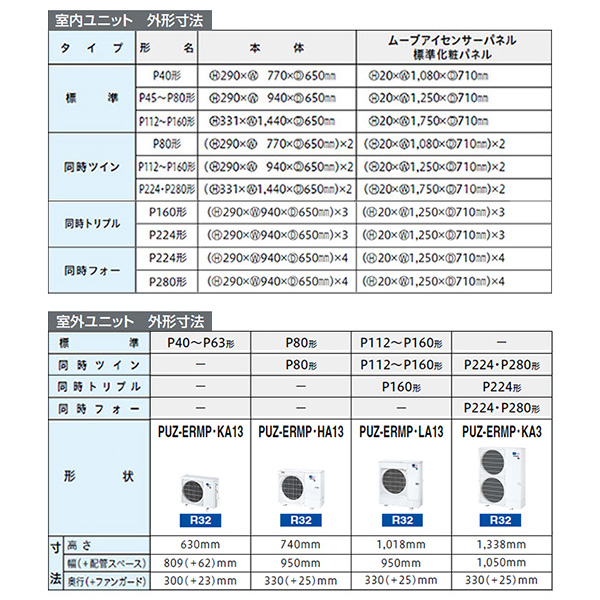 カテゴリ 業務用エアコン 型番 PLZX-ERMP140L3 定価 2,272,600円 販売価格 税込 478,000円 詳細 ■メーカー:三菱電機 ■モデル名:2023年モデル ■タイプ名:パッケージエアコン / 天井埋込形2方向 / スリムER / 標準パネル / ツイン(室内機2台×室外機1台) ■能力:5馬力(P140形) /【平米数】82~122㎡ /【坪数】24~36坪 /【畳数】48~72畳 ■電源:三相200V ■室内機:PL-RP71LA19 x2 ■室外機:PUZ-ERMP140LA13 ●室内機サイズ:高さ290mm×幅940mm×奥行650mm ●室外機サイズ:高1018mm×幅950mm×奥行330(+25)mm ■通年エネルギー消費効率:5.3 ■その他機能等 ・ワイヤード ・ムーブアイ ・冷暖自動運転 ・ドライ運転 ・ハイパワー運転 ・風速自動 ・風速ノッチ4 ・風向独立制御 ・ホットスタート ※記載された情報は商品仕様の一部ですので、詳細はメーカーサイトにてご確認ください。 ※標準取付工事のほか、家電量販店では対応困難な『隠ぺい配管工事』も承ります。