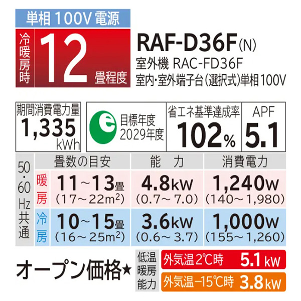 カテゴリ ハウジングエアコン 型番 RAF-D36F 定価 オープン価格 販売価格 税込 285,000円 詳細 ■メーカー:日立 ■シリーズ名:白くまくん メガ暖 FDシリーズ ■タイプ名:床置き形 ■適用畳数:12畳用 ■カラー:ロゼシャンパン ■電源:単相100V ■室内機:RAF-D36F-N ■室外機:RAC-FD36F ●室内機サイズ:高さ59.5mm×幅750mm×奥行230mm ●室外機サイズ:高さ720mm×幅792(+94)mm×奥行299(+66)mm ■期間消費電力量(年間):1335kWh ■その他機能等 ・寒冷地仕様 ・空清フィルター ・エアコン内部クリーン(ワンタッチ) ・イオンミストできれい ・デュアルバイパス暖房 ・みはって霜取りS ・カラッと除湿(手動/ランドリー/けつろ制御) ・凍結防止ヒーター ・上下スイング / 左右スイング ※記載された情報は商品仕様の一部ですので、詳細はメーカーサイトにてご確認ください。 ※標準取付工事のほか、家電量販店では対応困難な『隠ぺい配管工事』も承ります。