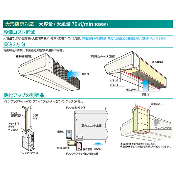 カテゴリ 業務用エアコン 型番 RCXB28043MUB 定価 3,640,780円 販売価格 税込 970,000円 詳細 ■メーカー:東芝 ■モデル名:2023年モデル ■タイプ名:パッケージエアコン / 天井吊り形1方向 / ツイン(室内機2台×室外機1台) / 大清快 / ウルトラパワーエコ ■能力:10馬力(P280形) /【平米数】165~243㎡ /【坪数】50~73坪 /【畳数】100~146畳 ■電源:三相200V ■室内機:AIC-RP1404H x2 ■室外機:ROA-RP2803HX x1 ●室内機サイズ:高さ235mm×幅1586mm×奥行690mm ●室外機サイズ:高さ1550mm×幅1010mm×奥行370mm ■通年エネルギー消費効率:5.6 ■その他機能等 ・ワイヤード ・ドライ運転 ・冷暖自動運転 ・セーブ運転 ・ホットスタート ・風量切換(2段階) ・スマート節約運転 ・除霜連携 ・ドレンアップ機能 ※記載された情報は商品仕様の一部ですので、詳細はメーカーサイトにてご確認ください。 ※標準取付工事のほか、家電量販店では対応困難な『隠ぺい配管工事』も承ります。