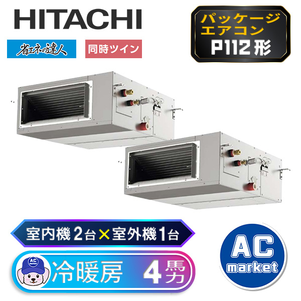 RPI-GP112RSHP8 日立 ツイン(室内機2台×室外機1台) 業務用エアコン パッケージエアコン ダクト形 てんうめ(高静圧) 省エネの達人 ワイヤード 4馬力 三相200V 2023年モデル