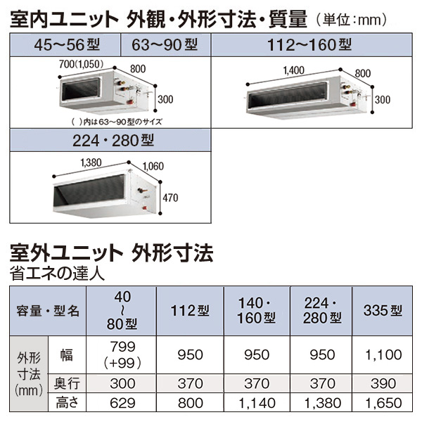 ■タイプ名:パッケージエアコン / ダクト形 / てんうめ(高静圧) / 省エネの達人 / ツイン(室内機2台×室外機1台)