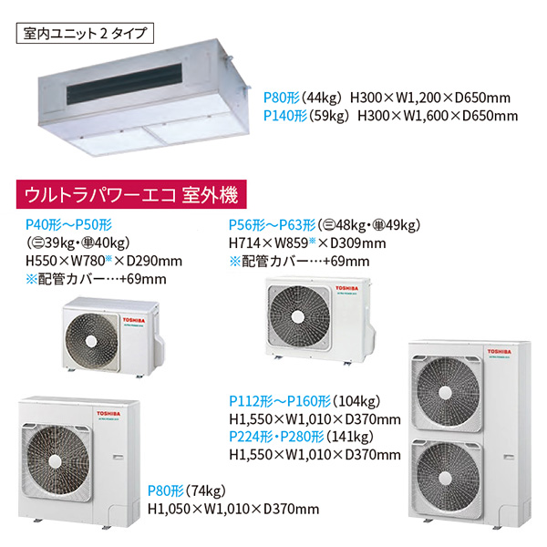 カテゴリ 業務用エアコン 型番 RPXB16033MUB 定価 2,886,840円 販売価格 税込 769,000円 詳細 ■メーカー:東芝 ■モデル名:2023年モデル ■タイプ名:パッケージエアコン / 厨房用 / ツイン(室内機2台×室外機1台) / ウルトラパワーエコ ■能力:6馬力(P160形) /【平米数】94~139㎡ /【坪数】28~42坪 /【畳数】56~84畳 ■電源:三相200V ■室内機:AIC-RP803PH x2 ■室外機:ROA-RP1603HX ●室内機サイズ:高さ300mm×幅1200mm×奥行650mm ●室外機サイズ:高さ1550mm×幅1010mm×奥行370mm ■通年エネルギー消費効率:4.3 / 4.5 ■その他機能等 ・ワイヤード ・ドライ運転 ・冷暖自動運転 ・セーブ運転 ・ホットスタート ・風量切換(3段階) ・スマート節約運転 ・除霜連携 ・ドレンアップ機能 ※記載された情報は商品仕様の一部ですので、詳細はメーカーサイトにてご確認ください。 ※標準取付工事のほか、家電量販店では対応困難な『隠ぺい配管工事』も承ります。