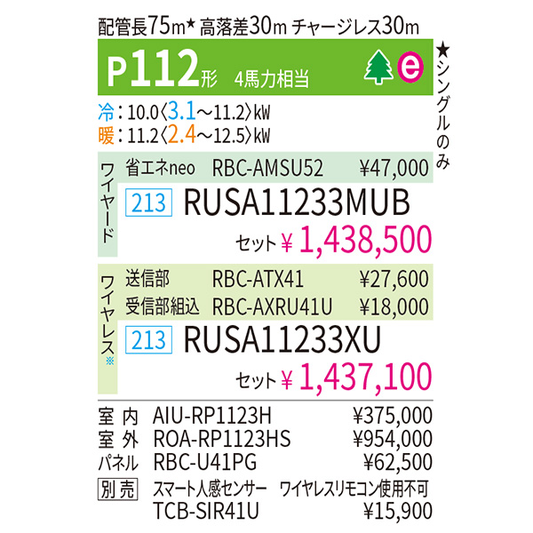 ■能力:4馬力(P112形) /【平米数】66~97㎡ /【坪数】20~29坪 /【畳数】40~58畳