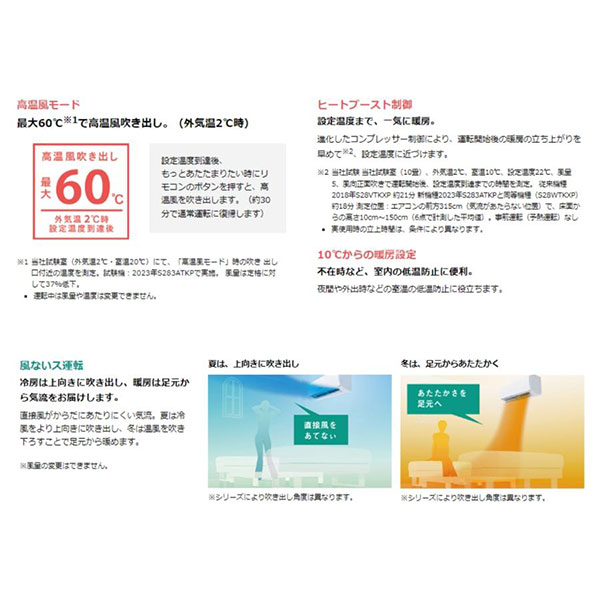 カテゴリ ルームエアコン 型番 S223ATKS-W 定価 300,000円 販売価格 税込 125,000円 送料 東京・神奈川全域:無料(一部地域や離島を除く) 詳細 ■メーカー:ダイキン ■モデル名:2023年モデル ■シリーズ名:スゴ暖 KXシリーズ ■適用畳数:6畳用 ■カラー:ホワイト ■電源:単相100V ■室内機:F223ATKS-W ■室外機:R223AKS ●室内機サイズ:高さ285mm×幅770mm×奥行233mm ●室外機サイズ:高さ610mm×幅795(+78)mm×奥行300(+42)mm ■期間消費電力量(年間):671kWh ■その他機能等 ・寒冷地仕様 ・PIT制御 ・スイングコンプレッサー ・ドレンパンヒーター ・9段階セレクトドライ ・自動運転 ・水内部クリーン(結露水洗浄) ・ストリーマ空気清浄 / ストリーマ内部クリーン ・高温風モード(60℃吹出し) ※記載された情報は商品仕様の一部ですので、詳細はメーカーサイトにてご確認ください。 ※標準取付工事のほか、家電量販店では対応困難な『隠ぺい配管工事』も承ります。