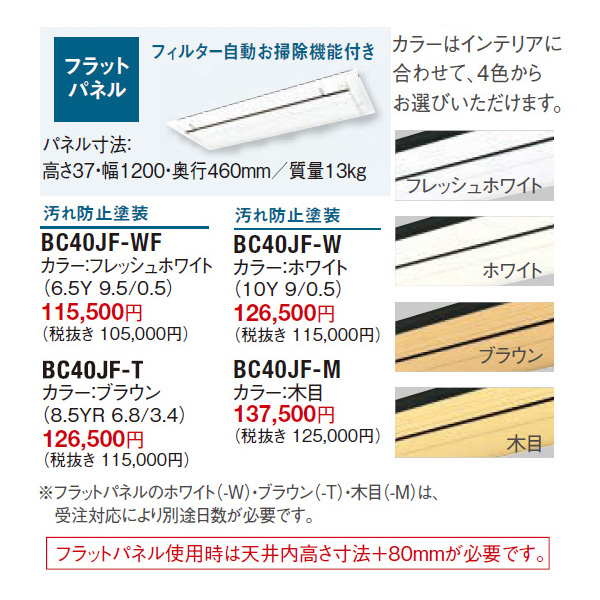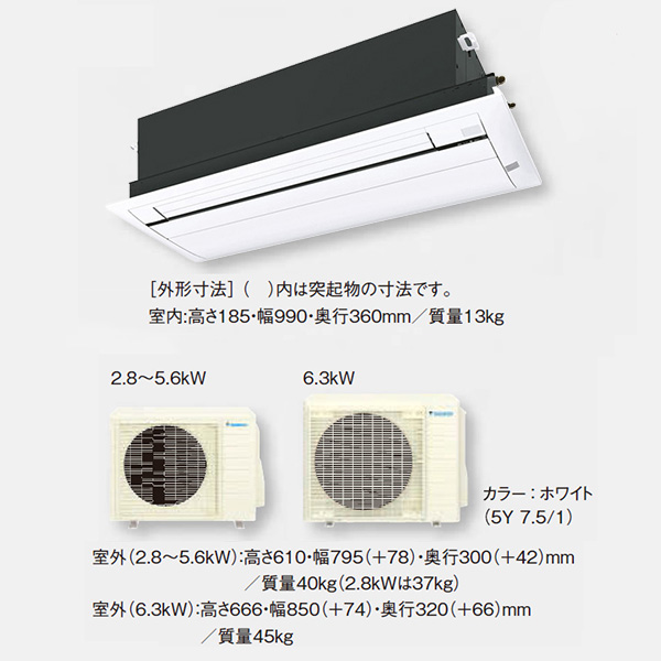 カテゴリ ハウジングエアコン 型番 S28ZCV-F(フラットパネル) 定価 580,000円 販売価格 税込 185,020円 詳細 ■メーカー:ダイキン ■モデル名:2022年モデル ■シリーズ名:Cシリーズ ■タイプ名:天井埋込形1方向 ■適用畳数:10畳用 ■パネルカラー:BC40JF-WF(フレッシュホワイト) / BC40JF-W(ホワイト) / BC40JF-T(ブラウン) / BC40JF-M(木目) ■電源:単相200V ■室内機:F28ZCV ■室外機:R28ZCV ●室内機サイズ:高さ185mm×幅990mm×奥行360mm ●室外機サイズ:高さ610mm×幅795(+78)mm×奥行300(+42)mm ■期間消費電力量(年間):1018kWh ■その他機能等 ・室外電源 ・スイングコンプレッサー ・タフネス冷房・暖房 ・5段階セレクトドライ ・自動運転 ・2WAYすみずみ気流 ・快眠運転(快眠プログラム) ・ダブルブロック空気清浄 ・水内部クリーン ※記載された情報は商品仕様の一部ですので、詳細はメーカーサイトにてご確認ください。 ※標準取付工事のほか、家電量販店では対応困難な『隠ぺい配管工事』も承ります。
