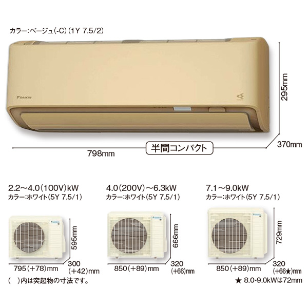 カテゴリ ルームエアコン 型番 S364ATAS-C 定価 490,000円 販売価格 税込 210,200円 送料 東京・神奈川全域:無料(一部地域や離島を除く) 詳細 ■メーカー:ダイキン ■モデル名:2024年モデル ■シリーズ名:AXシリーズ ■適用畳数:12畳用 ■カラー:ベージュ ■電源:単相100V ■室内機:F364ATAS-C ■室外機:R364AAS ●室内機サイズ:高さ295mm×幅798mm×奥行370mm ●室外機サイズ:高さ595mm×幅795(+78)mm×奥行300(+42)mm ■期間消費電力量(年間):kWh ■その他機能等 ・タフネス冷房/暖房 ・さらら除湿(リニアハイブリッド) ・AI快適自動 ・プレミアム冷房 ・節電自動 ・フィルター自動お掃除 ・人・床温度センサー(人・床・壁) ・ストリーマ(空気清浄/内部クリーン) ・水内部クリーン(結露水洗浄) ※記載された情報は商品仕様の一部ですので、詳細はメーカーサイトにてご確認ください。 ※標準取付工事のほか、家電量販店では対応困難な『隠ぺい配管工事』も承ります。