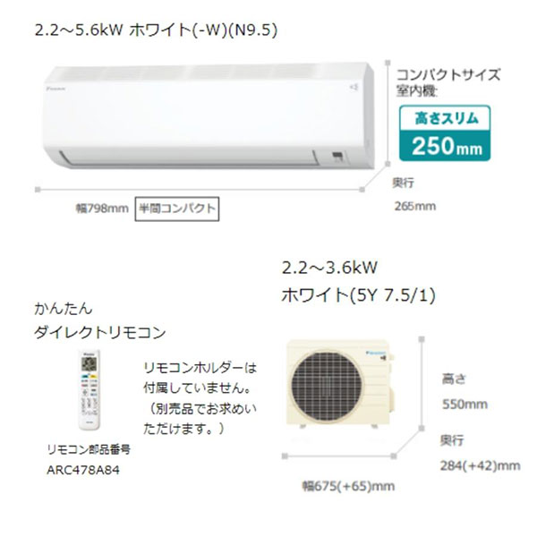 ●室外機サイズ:高550mm×幅675(+65)mm×奥行284(+42)mm