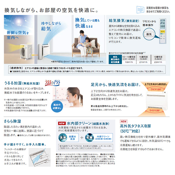 カテゴリ ハウジングエアコン 型番 S36ZVRV-W 定価 533,500円 販売価格 税込 223,000円 詳細 ■メーカー:ダイキン ■モデル名:2022年モデル ■シリーズ名:うるさら VRシリーズ ■タイプ名:床置き形 ■適用畳数:12畳用 ■カラー:ホワイト ■電源:単相200V ■室内機:F36ZVRV-W ■室外機:R36ZVRV ●室内機サイズ:高さ600mm×幅700mm×奥行210mm ●室外機サイズ:高さ708mm×幅795(+78)mm×奥行300(+42)mm ■期間消費電力量(年間):1362kWh ■その他機能等 ・室外電源 ・スイングコンプレッサー ・タフネス冷房・暖房 ・うるる加湿(無給水加湿) ・さらら除湿(ハイブリッド方式) ・おまかせ自動運転 ・ランドリー乾燥 ・空気清浄フィルター(空清フィルター+防カビフィルター) ・水内部クリーン ※記載された情報は商品仕様の一部ですので、詳細はメーカーサイトにてご確認ください。 ※標準取付工事のほか、家電量販店では対応困難な『隠ぺい配管工事』も承ります。