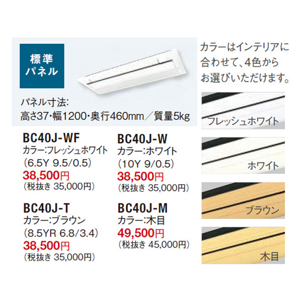 ■パネルカラー:BC40J-WF(フレッシュホワイト) / BC40J-W(ホワイト) / BC40J-T(ブラウン) / BC40J-M(木目)