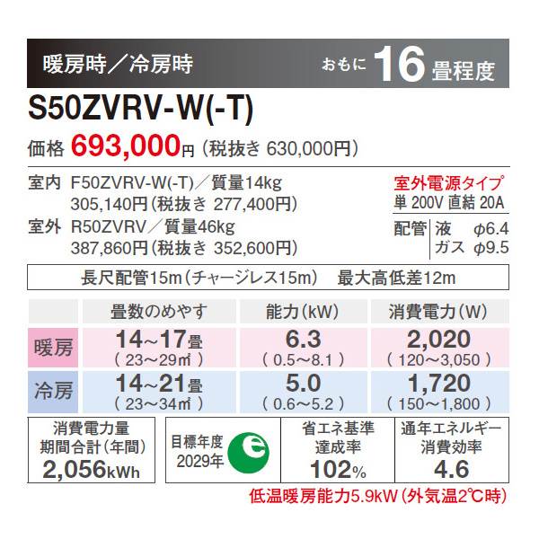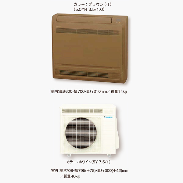 カテゴリ ハウジングエアコン 型番 S50ZVRV-T 定価 693,000円 販売価格 税込 289,000円 詳細 ■メーカー:ダイキン ■モデル名:2022年モデル ■シリーズ名:うるさら VRシリーズ ■タイプ名:床置き形 ■適用畳数:16畳用 ■カラー:ブラウン ■電源:単相200V ■室内機:F50ZVRV-T ■室外機:R50ZVRV ●室内機サイズ:高さ600mm×幅700mm×奥行210mm ●室外機サイズ:高さ708mm×幅795(+78)mm×奥行300(+42)mm ■期間消費電力量(年間):2056kWh ■その他機能等 ・室外電源 ・スイングコンプレッサー ・タフネス冷房・暖房 ・うるる加湿(無給水加湿) ・さらら除湿(ハイブリッド方式) ・おまかせ自動運転 ・ランドリー乾燥 ・空気清浄フィルター(空清フィルター+防カビフィルター) ・水内部クリーン ※記載された情報は商品仕様の一部ですので、詳細はメーカーサイトにてご確認ください。 ※標準取付工事のほか、家電量販店では対応困難な『隠ぺい配管工事』も承ります。