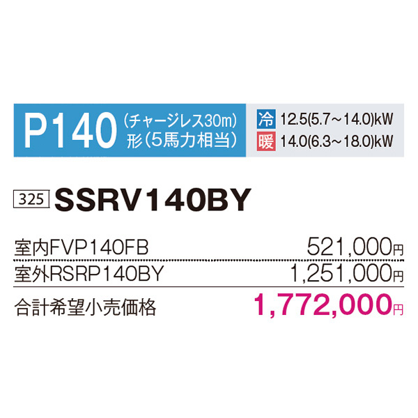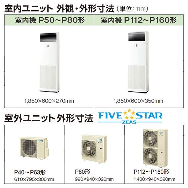 カテゴリ 業務用エアコン 型番 SSRV140BY 定価 1,949,200円 販売価格 税込 574,000円 送料 東京・神奈川全域:無料(一部地域や離島を除く) 詳細 ■メーカー:ダイキン ■モデル名:2023年モデル ■タイプ名:パッケージエアコン / 床置き形 / FIVE STAR ZEAS / シングル(室内機1台×室外機1台) ■能力:5馬力(P140形) /【平米数】82~122㎡ /【坪数】24~36坪 /【畳数】48~72畳 ■電源:三相200V ■室内機:FVP140FB ■室外機:RSRP140BY ●室内機サイズ:高さ1850mm×幅600mm×奥行350mm ●室外機サイズ:高さ1430mm×幅940mm×奥行320mm ■その他機能等 ・ワイヤード ・スマート学習節電 ・フォーシーズン制御 ・風量エコ自動制御 ・快速冷暖モード ・余熱再利用運転 ・マイコンドライ ・ホットスタート(除霜後) ・抗菌・防カビフィルター ※記載された情報は商品仕様の一部ですので、詳細はメーカーサイトにてご確認ください。 ※標準取付工事のほか、家電量販店では対応困難な『隠ぺい配管工事』も承ります。