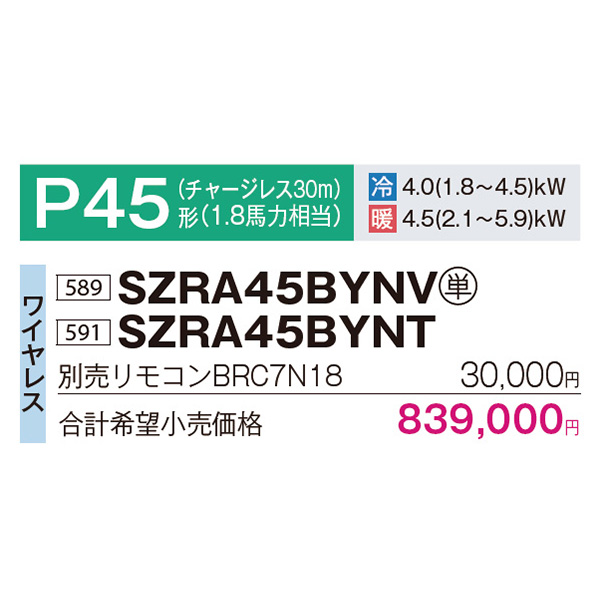 カテゴリ 業務用エアコン 型番 SZRA45BYNV / SZRA45BYNT 定価 922,900円 販売価格 税込 227,000円 送料 東京・神奈川全域:無料(一部地域や離島を除く) 詳細 ■メーカー:ダイキン ■モデル名:2023年モデル ■タイプ名:パッケージエアコン / 壁掛け形 / Eco ZEAS / 標準タイプ / シングル(室内機1台×室外機1台) ■能力:1.8馬力(P45形) /【平米数】26~39㎡ /【坪数】7~11坪 /【畳数】14~22畳 ■電源:単相200V / 三相200V ■室内機:FAP45FB ■室外機:RZRP45BYV / RZRP45BYT ●室内機サイズ:高さ290mm×幅795mm×奥行238mm ●室外機サイズ:高さ610mm×幅795mm×奥行300mm ■その他機能等 ・ワイヤレス ・スマート学習節電 ・風量エコ自動制御 ・フォーシーズン制御 ・高温みまもり運転 ・快速冷暖モード ・オートスイング ・ホットスタート(除霜後) ・抗菌・防カビフィルター ※記載された情報は商品仕様の一部ですので、詳細はメーカーサイトにてご確認ください。 ※標準取付工事のほか、家電量販店では対応困難な『隠ぺい配管工事』も承ります。
