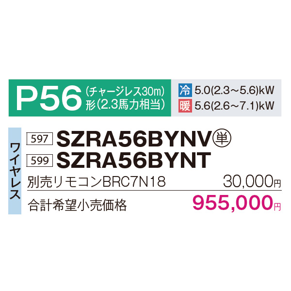 カテゴリ 業務用エアコン 型番 SZRA56BYNV / SZRA56BYNT 定価 1,050,500円 販売価格 税込 258,000円 送料 東京・神奈川全域:無料(一部地域や離島を除く) 詳細 ■メーカー:ダイキン ■モデル名:2023年モデル ■タイプ名:パッケージエアコン / 壁掛け形 / Eco ZEAS / 標準タイプ / シングル(室内機1台×室外機1台) ■能力:2.3馬力(P56形) /【平米数】33~49㎡ /【坪数】10~14坪 /【畳数】20~28畳 ■電源:単相200V / 三相200V ■室内機:FAP56FB ■室外機:RZRP56BYV / RZRP56BYT ●室内機サイズ:高さ290mm×幅795mm×奥行238mm ●室外機サイズ:高さ610mm×幅795mm×奥行300mm ■その他機能等 ・ワイヤレス ・スマート学習節電 ・風量エコ自動制御 ・フォーシーズン制御 ・高温みまもり運転 ・快速冷暖モード ・オートスイング ・ホットスタート(除霜後) ・抗菌・防カビフィルター ※記載された情報は商品仕様の一部ですので、詳細はメーカーサイトにてご確認ください。 ※標準取付工事のほか、家電量販店では対応困難な『隠ぺい配管工事』も承ります。