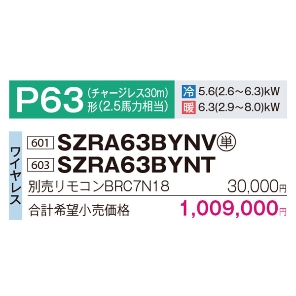 カテゴリ 業務用エアコン 型番 SZRA63BYNV / SZRA63BYNT 定価 1,109,900円 販売価格 税込 273,000円 送料 東京・神奈川全域:無料(一部地域や離島を除く) 詳細 ■メーカー:ダイキン ■モデル名:2023年モデル ■タイプ名:パッケージエアコン / 壁掛け形 / Eco ZEAS / 標準タイプ / シングル(室内機1台×室外機1台) ■能力:2.5馬力(P63形) /【平米数】37~55㎡ /【坪数】11~16坪 /【畳数】22~32畳 ■電源:単相200V / 三相200V ■室内機:FAP63FB ■室外機:RZRP63BYV / RZRP63BYT ●室内機サイズ:高さ290mm×幅1050mm×奥行238mm ●室外機サイズ:高さ610mm×幅795mm×奥行300mm ■その他機能等 ・ワイヤレス ・スマート学習節電 ・風量エコ自動制御 ・フォーシーズン制御 ・高温みまもり運転 ・快速冷暖モード ・オートスイング ・ホットスタート(除霜後) ・抗菌・防カビフィルター ※記載された情報は商品仕様の一部ですので、詳細はメーカーサイトにてご確認ください。 ※標準取付工事のほか、家電量販店では対応困難な『隠ぺい配管工事』も承ります。