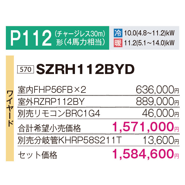 カテゴリ 業務用エアコン 型番 SZRH112BYD 定価 1,743,060円 販売価格 税込 428,000円 送料 東京・神奈川全域:無料(一部地域や離島を除く) 詳細 ■メーカー:ダイキン ■モデル名:2023年モデル ■タイプ名:パッケージエアコン / 天井吊り形1方向 / Eco ZEAS / 標準タイプ / ツイン(室内機2台×室外機1台) ■能力:4馬力(P112形) /【平米数】66~97㎡ /【坪数】20~29坪 /【畳数】40~58畳 ■電源:三相200V ■室内機:FHP56FB ×2 ■室外機:RZRP112BY ●室内機サイズ:235mm×960mm×690mm ●室外機サイズ:1080mm×940mm×320mm ■その他機能等 ・ワイヤード ・スマート学習節電 ・除湿冷房 ・フォーシーズン制御 ・快適エコ除湿制御 ・快速冷暖モード ・ホットスタート(除霜後) ・水内部クリーン ・抗菌・防カビフィルター ※記載された情報は商品仕様の一部ですので、詳細はメーカーサイトにてご確認ください。 ※標準取付工事のほか、家電量販店では対応困難な『隠ぺい配管工事』も承ります。