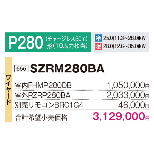 カテゴリ 業務用エアコン 型番 SZRM280BA 定価 3,441,900円 販売価格 税込 844,000円 送料 東京・神奈川全域:無料(一部地域や離島を除く) 詳細 ■メーカー:ダイキン ■モデル名:2023年モデル ■タイプ名:パッケージエアコン / ダクト形 / Eco ZEAS / 標準タイプ / シングル(室内機1台×室外機1台) ■能力:10馬力(P280形) /【平米数】165~243㎡ /【坪数】50~73坪 /【畳数】100~146畳 ■電源:三相200V ■室内機:FHMP280DB ■室外機:RZRP280BA ●室内機サイズ:高さ470mm×幅1380mm×奥行1100mm ●室外機サイズ:高さ1430mm×幅940mm×奥行320mm ■通年エネルギー消費効率:3.9 ■その他機能等 ・ワイヤード ・スマート学習節電 ・風量エコ自動制御 ・フォーシーズン制御 ・高温みまもり運転 ・快速冷暖モード ・ホットスタート(除霜後) ・マイコンドライ ・清潔アルミフィン ※記載された情報は商品仕様の一部ですので、詳細はメーカーサイトにてご確認ください。 ※標準取付工事のほか、家電量販店では対応困難な『隠ぺい配管工事』も承ります。