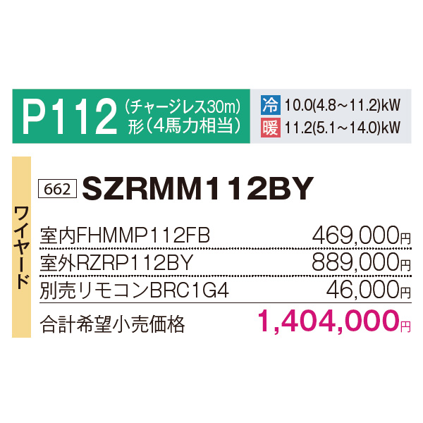 カテゴリ 業務用エアコン 型番 SZRMM112BY 定価 1,544,400円 販売価格 税込 379,000円 送料 東京・神奈川全域:無料(一部地域や離島を除く) 詳細 ■メーカー:ダイキン ■モデル名:2023年モデル ■タイプ名:パッケージエアコン / ダクト形 / Eco ZEAS / 標準タイプ / シングル(室内機1台×室外機1台) ■能力:4馬力(P112形) /【平米数】66~97㎡ /【坪数】20~29坪 /【畳数】40~58畳 ■電源:三相200V ■室内機:FHMMP112FB ■室外機:RZRP112BY ●室内機サイズ:高さ245mm×幅1400mm×奥行800mm ●室外機サイズ:高さ1080mm×幅940mm×奥行320mm ■通年エネルギー消費効率:5.1 ■その他機能等 ・ワイヤード ・スマート学習節電 ・風量エコ自動制御 ・フォーシーズン制御 ・高温みまもり運転 ・快速冷暖モード ・ホットスタート(除霜後) ・マイコンドライ ・清潔アルミフィン ※記載された情報は商品仕様の一部ですので、詳細はメーカーサイトにてご確認ください。 ※標準取付工事のほか、家電量販店では対応困難な『隠ぺい配管工事』も承ります。