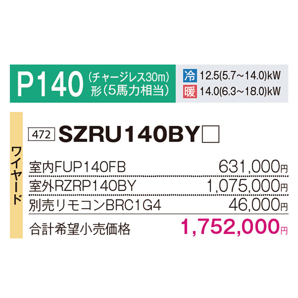 カテゴリ 業務用エアコン 型番 SZRU140BY 定価 1,927,200円 販売価格 税込 473,000円 送料 東京・神奈川全域:無料(一部地域や離島を除く) 詳細 ■メーカー:ダイキン ■モデル名:2023年モデル ■タイプ名:パッケージエアコン / 天井吊り形4方向 / Eco ZEAS / ワンダ風流 / 標準タイプ / シングル(室内機1台×室外機1台) ■能力:5馬力(P140形) /【平米数】82~122㎡ /【坪数】24~36坪 /【畳数】48~72畳 ■電源:三相200V ■室内機:FUP140FB ■室外機:RZRP140BY ●室内機サイズ:高さ198mm×幅950mm×奥行950mm ●室外機サイズ:高さ1080mm×幅940mm×奥行320mm ■通年エネルギー消費効率:5 ■その他機能等 ・ワイヤード ・スマート学習節電 ・除湿冷房 ・フォーシーズン制御 ・快適エコ除湿制御 ・快速冷暖モード ・ホットスタート(除霜後) ・水内部クリーン ・抗菌・防カビフィルター ※記載された情報は商品仕様の一部ですので、詳細はメーカーサイトにてご確認ください。 ※標準取付工事のほか、家電量販店では対応困難な『隠ぺい配管工事』も承ります。