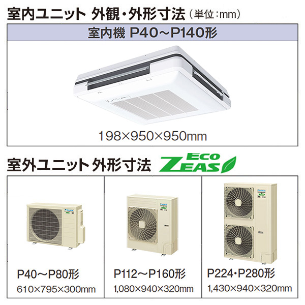 カテゴリ 業務用エアコン 型番 SZRU40BYV / SZRU40BYT 定価 1,059,300円 販売価格 税込 260,000円 送料 東京・神奈川全域:無料(一部地域や離島を除く) 詳細 ■メーカー:ダイキン ■モデル名:2023年モデル ■タイプ名:パッケージエアコン / 天井吊り形4方向 / Eco ZEAS / ワンダ風流 / 標準タイプ / シングル(室内機1台×室外機1台) ■能力:1.5馬力(P40形) /【平米数】24~35㎡ /【坪数】7~10坪 /【畳数】14~20畳 ■電源:単相200V / 三相200V ■室内機:FUP40FB ■室外機:RZRP40BYV / RZRP40BYT ●室内機サイズ:高さ198mm×幅950mm×奥行950mm ●室外機サイズ:高さ610mm×幅795mm×奥行300mm ■通年エネルギー消費効率:5.5 ■その他機能等 ・ワイヤード ・スマート学習節電 ・除湿冷房 ・フォーシーズン制御 ・快適エコ除湿制御 ・快速冷暖モード ・ホットスタート(除霜後) ・水内部クリーン ・抗菌・防カビフィルター ※記載された情報は商品仕様の一部ですので、詳細はメーカーサイトにてご確認ください。 ※標準取付工事のほか、家電量販店では対応困難な『隠ぺい配管工事』も承ります。